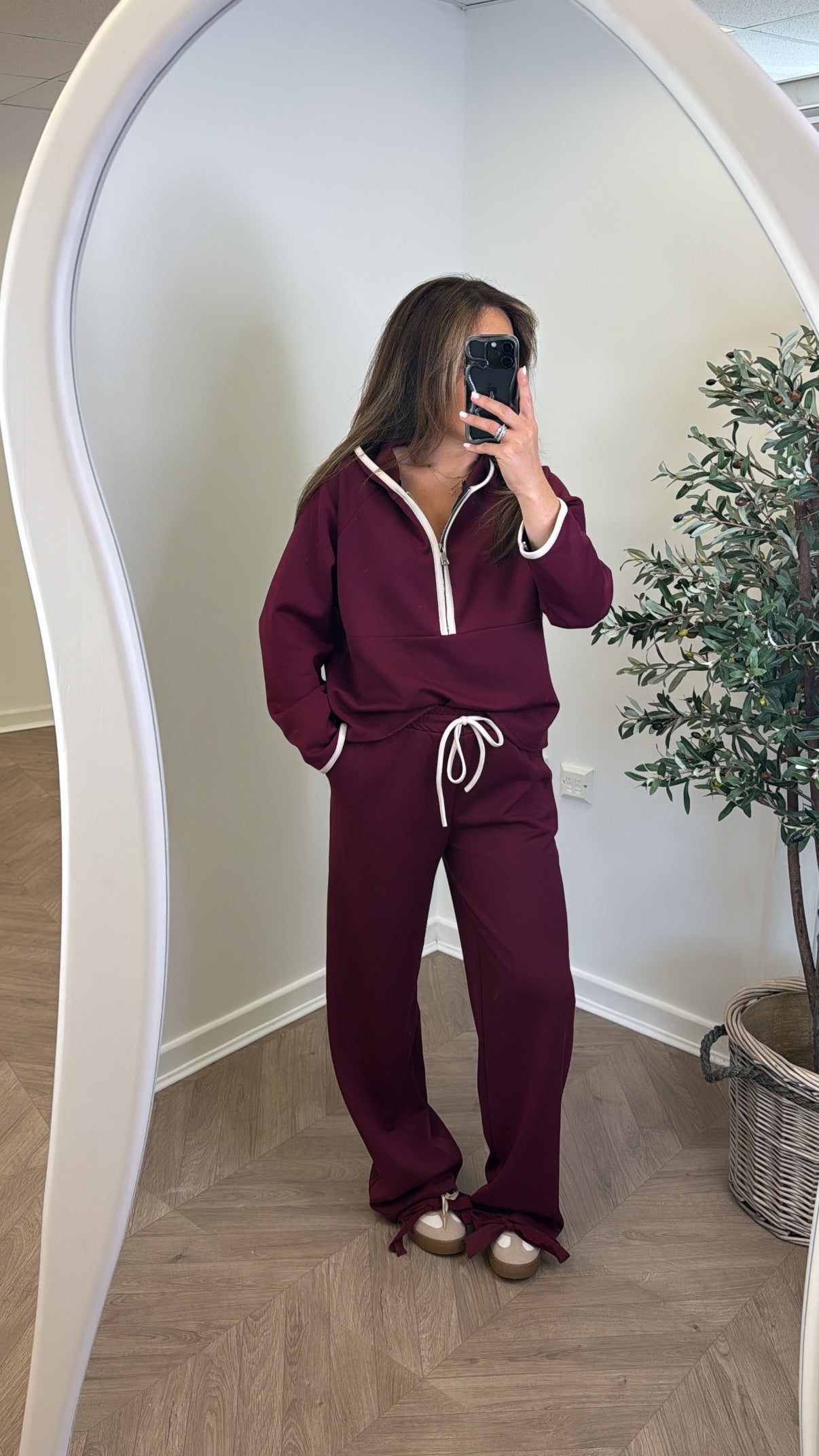 LIBERTY - Ensemble lounge bordeaux avec sweat à capuche zippé et pantalon